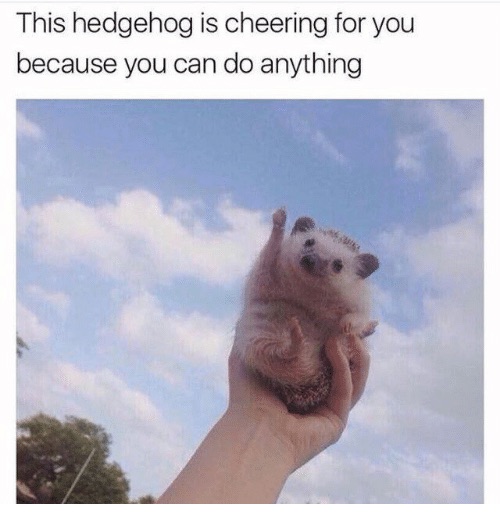 The long and the short of it is this: it doesn’t matter what your motivation is to get started on a project/habit/etc, as long as it’s something you’re passionate or excited about and you actually start it. If you need to get a buddy to check in with you about your progress, great! If you need to save a motivational hedgehog meme to your phone and look at it periodically, go for it!