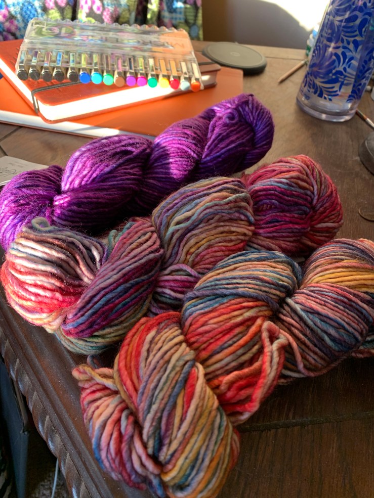 I’ve always been a fan of merino yarn; it’s so squishy and this lot is no exception. I absolutely love the colors of my recent acquisition, and I can’t wait to work with it!